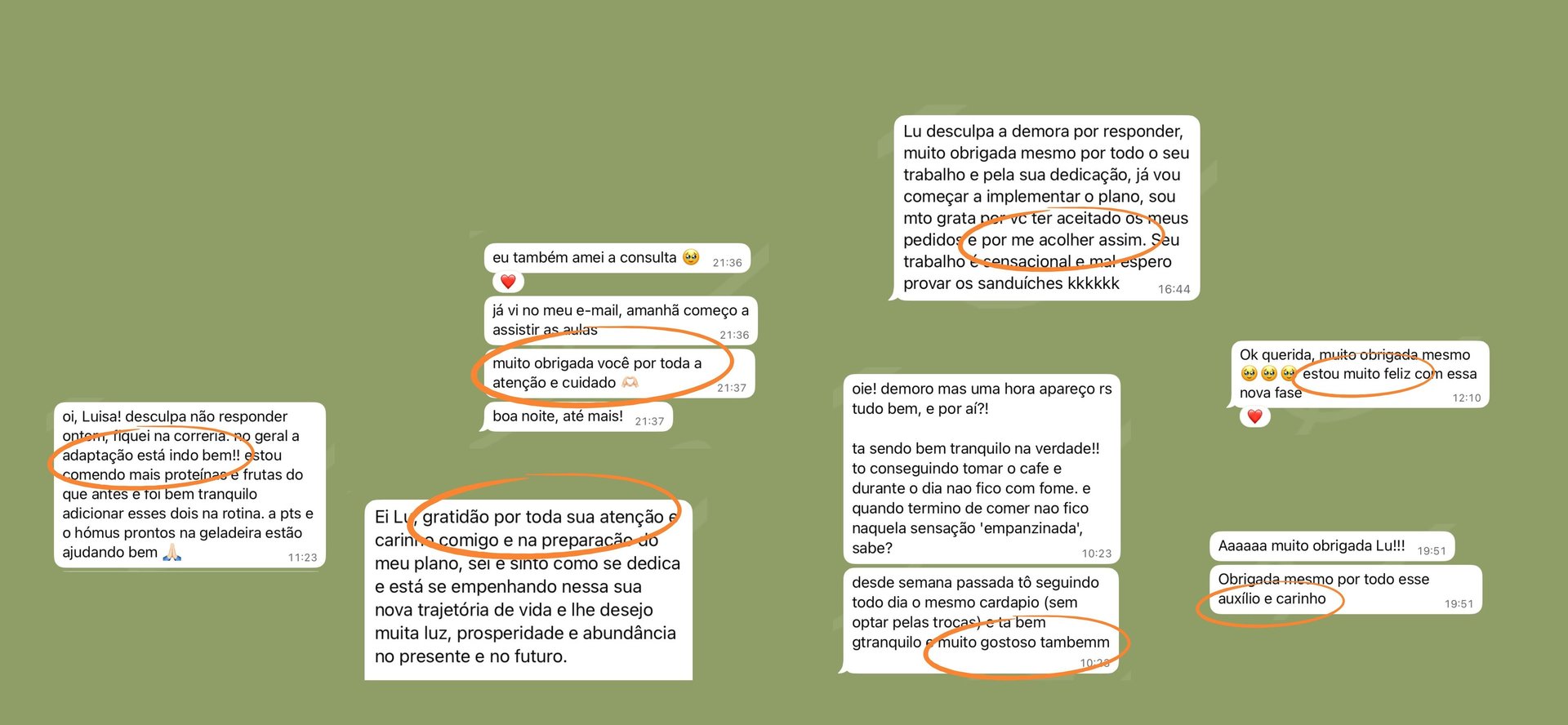 Esse acompanhamento dá espaço para observarmos seus avanços, lidarmos com possíveis desafios e garantirmos que cada etapa seja adaptada à sua realidade. Além disso, você terá suporte via WhatsApp durante todo o período, para não precisar esperar até a próxima consulta para tirar dúvidas ou pedir orientações.